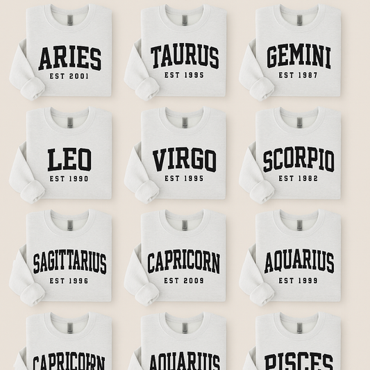Custom Zodiac Sweatshirt – Personalized Zodiac Sign + Birth Year