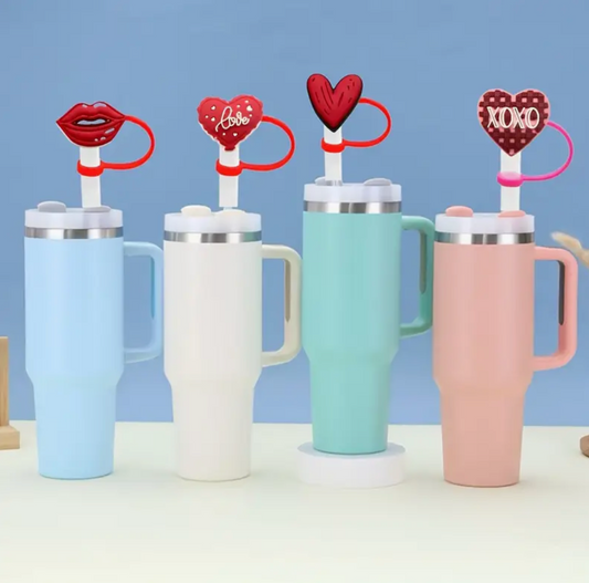 Valentine’s Day Heart Straw Caps – Reusable Dust-Proof Straw Toppers (XOXO, Love & Heart Designs)