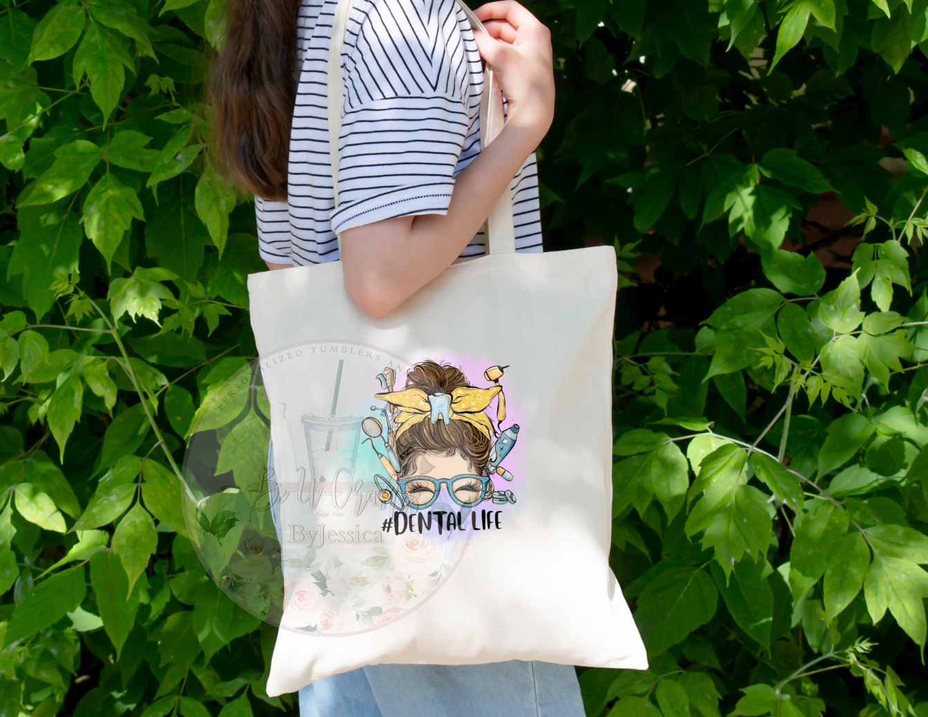 Carry your essentials in style with the Dental Life Canvas Tote Bag. Crafted from durable canvas, this tote offers ample space and sturdy handles for everyday use. Perfect for dental professionals or enthusiasts, it combines practicality with a sleek design that showcases your passion. Whether for work, school, or errands, this tote keeps your belongings organized and easily accessible while making a confident statement.