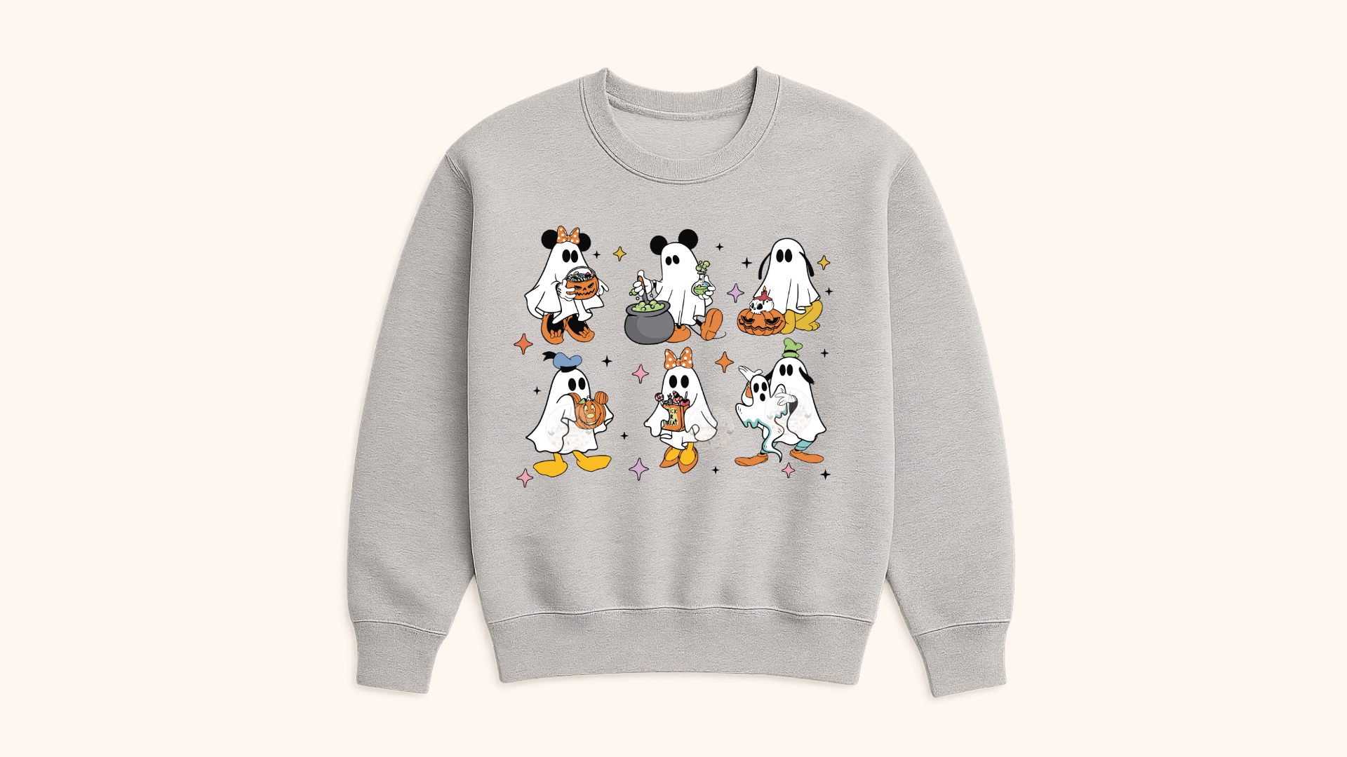 Your little one will be the cutest ghost in town with this Disney-inspired Halloween sweatshirt! ๐โจ Featuring playful ghost characters, pumpkins, cauldrons, and sparkly details, this cozy crewneck is perfect for school, trick-or-treating, or family pumpkin patch outings.