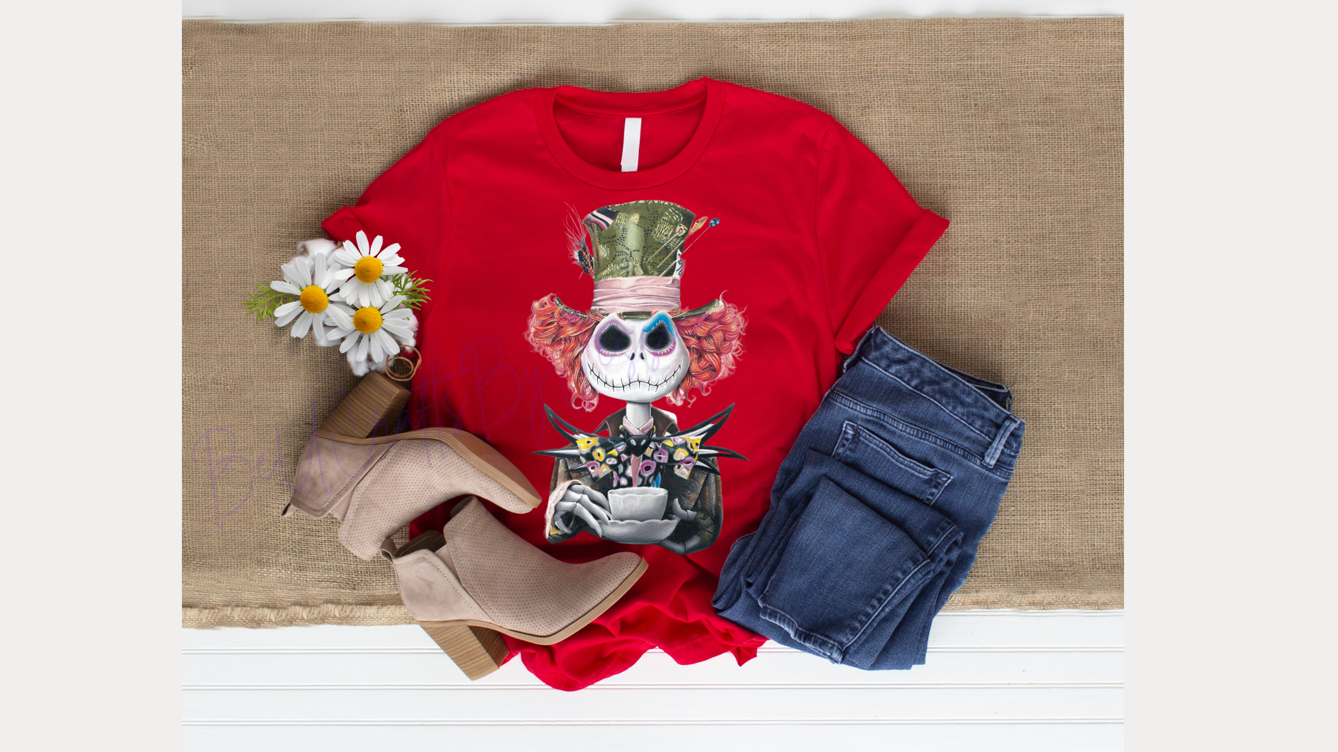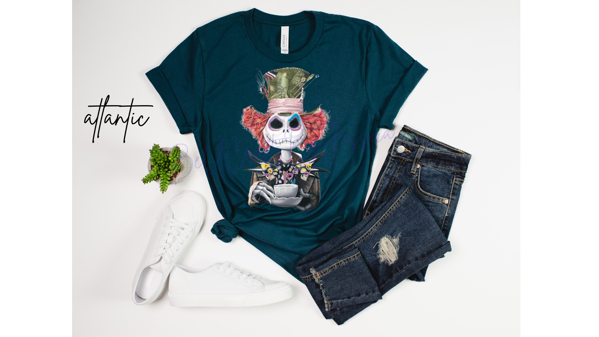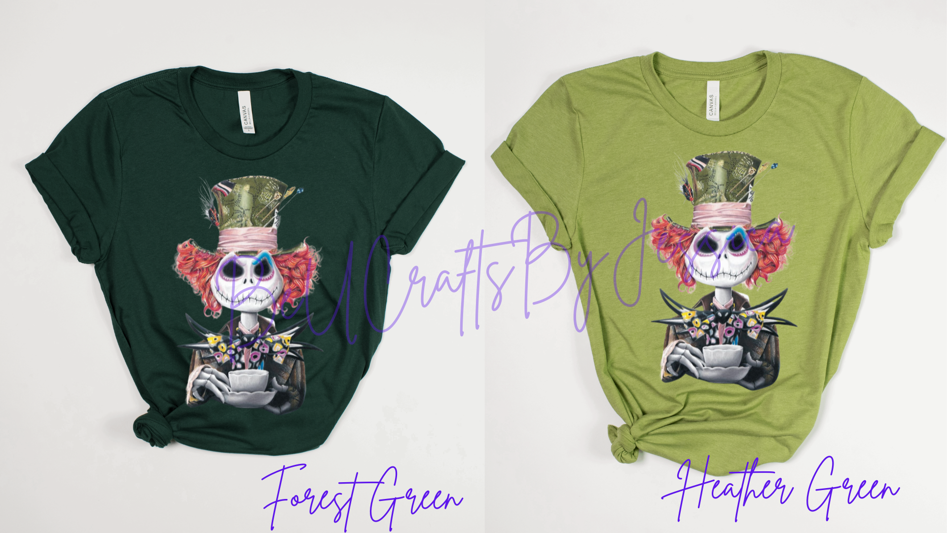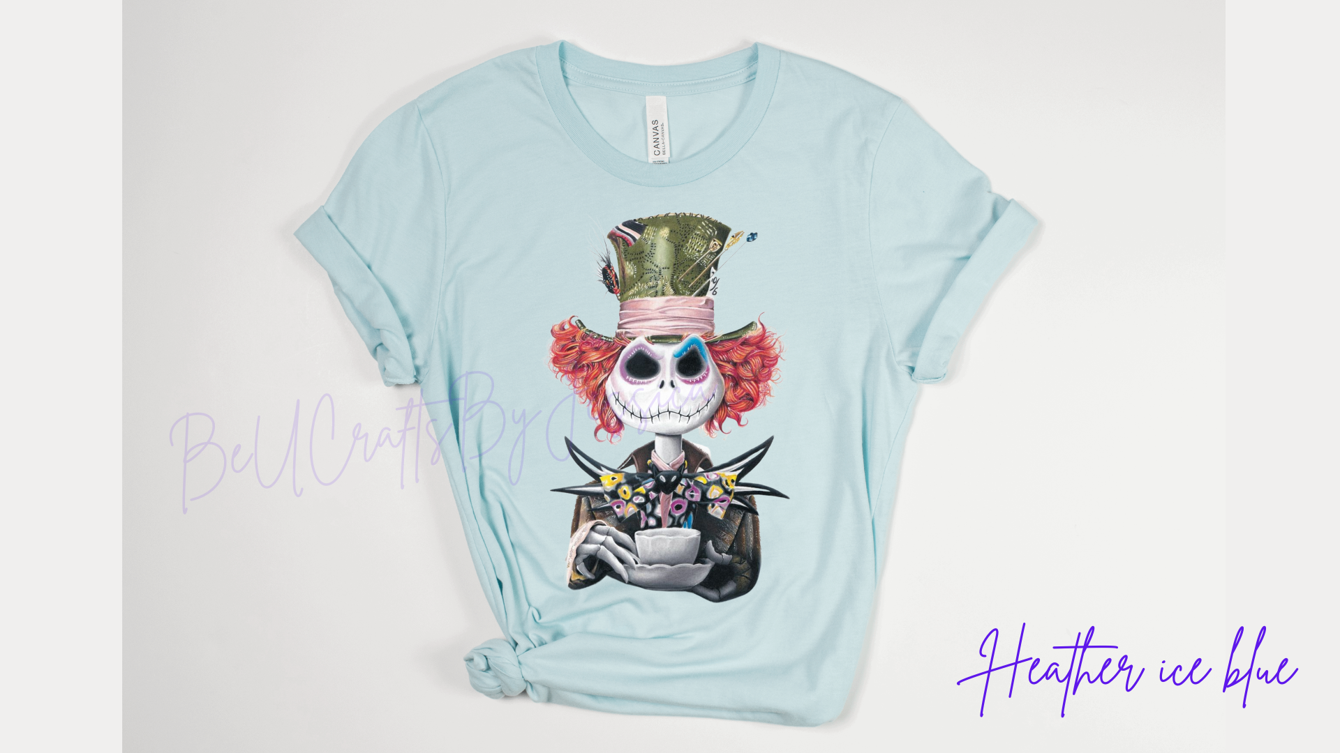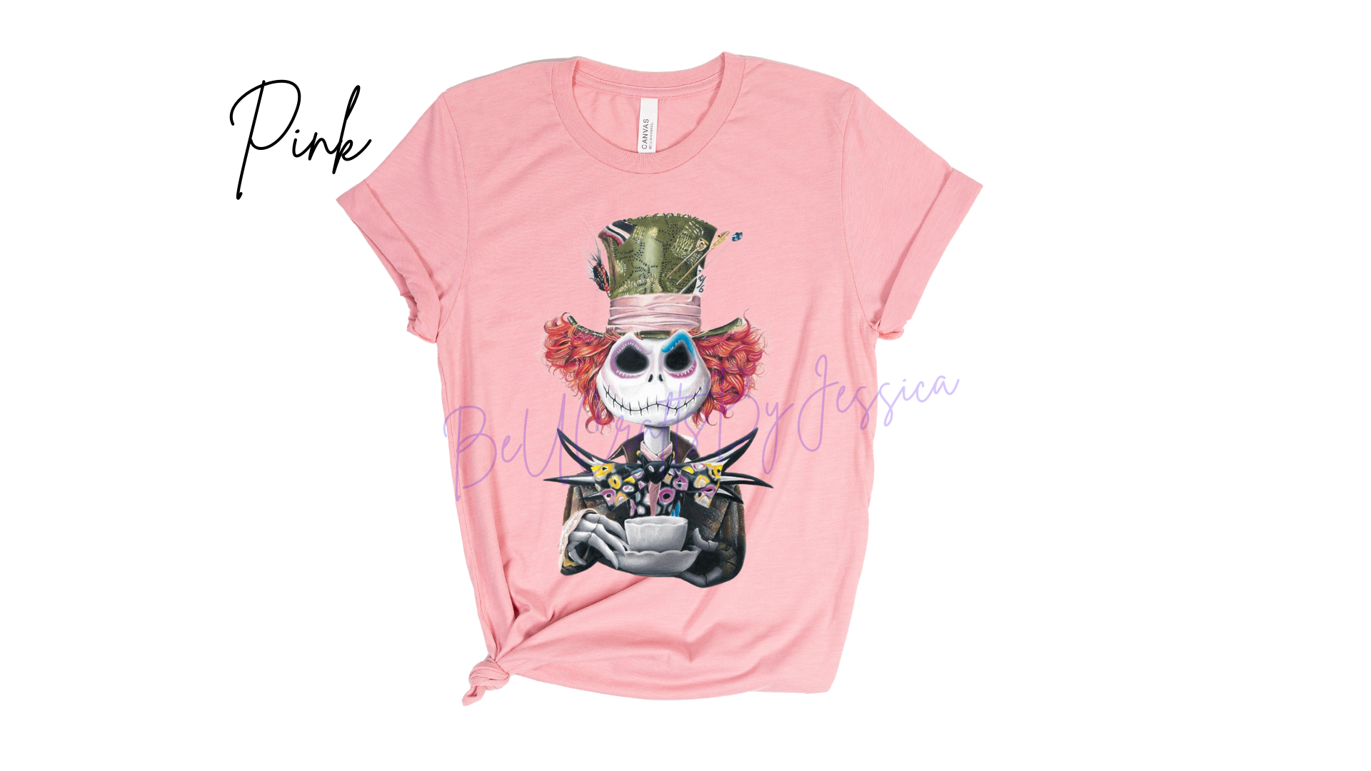 Looking for a unique and eye-catching shirt? Embrace your inner Mad Hatter and channel the spirit of Jack Skellington with our inspiring collection! Available in adult sizes, rock this must-have design.