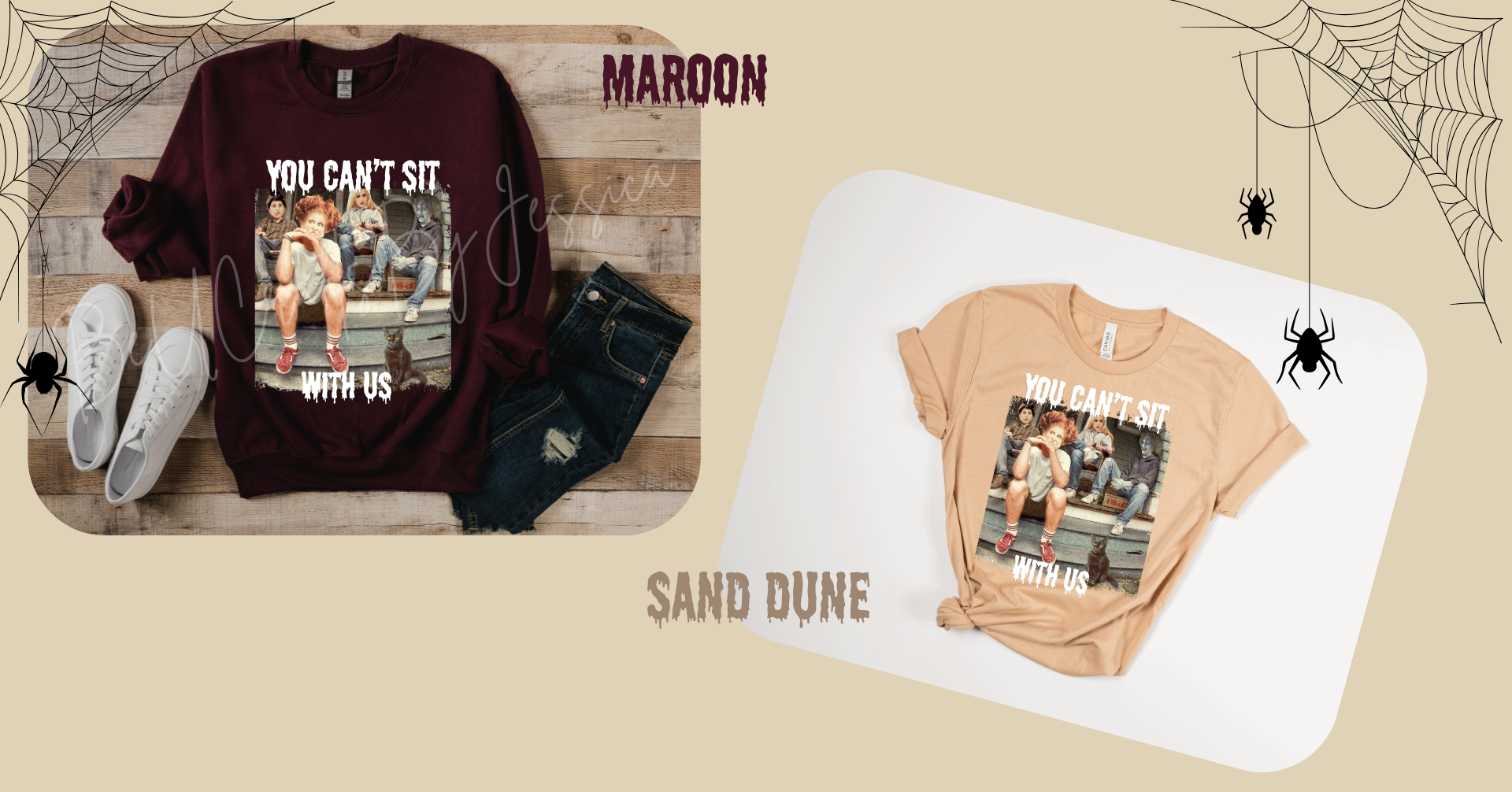 Stand out this season with our bold “You Can’t Sit With Us” graphic design, available in both tees . Perfect for spooky season vibes, everyday casual wear, or as a unique gift for horror fans.