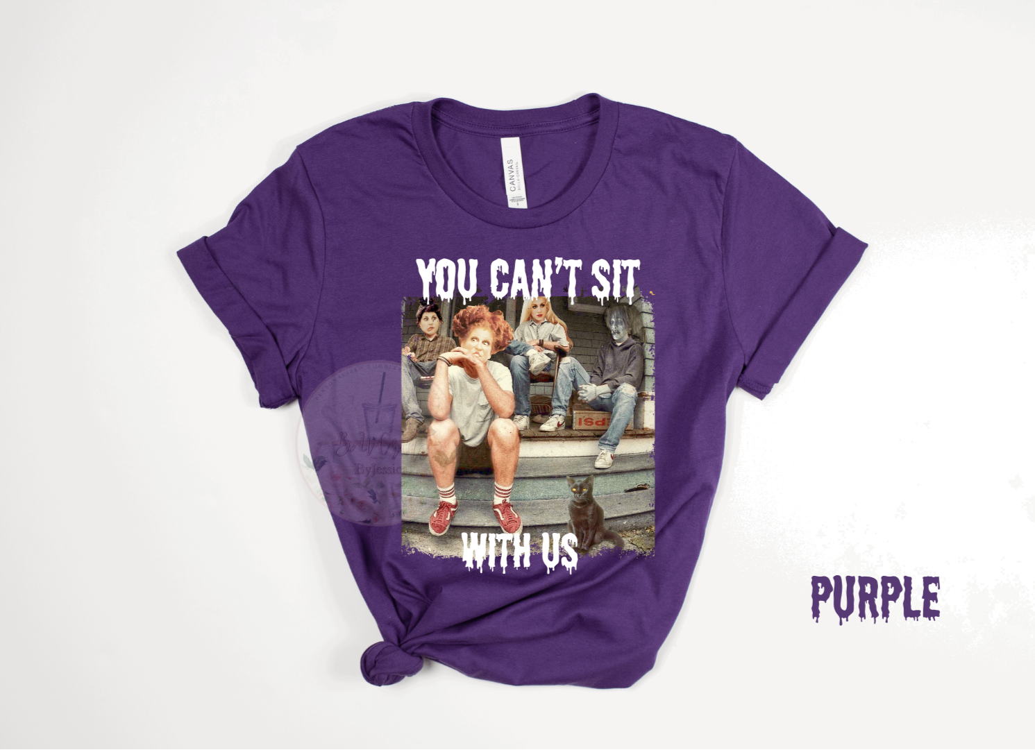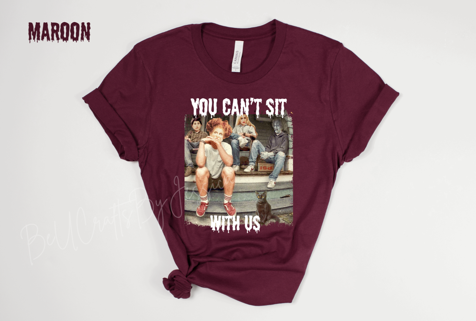 Stand out this season with our bold “You Can’t Sit With Us” graphic design, available in both tees . Perfect for spooky season vibes, everyday casual wear, or as a unique gift for horror fans.